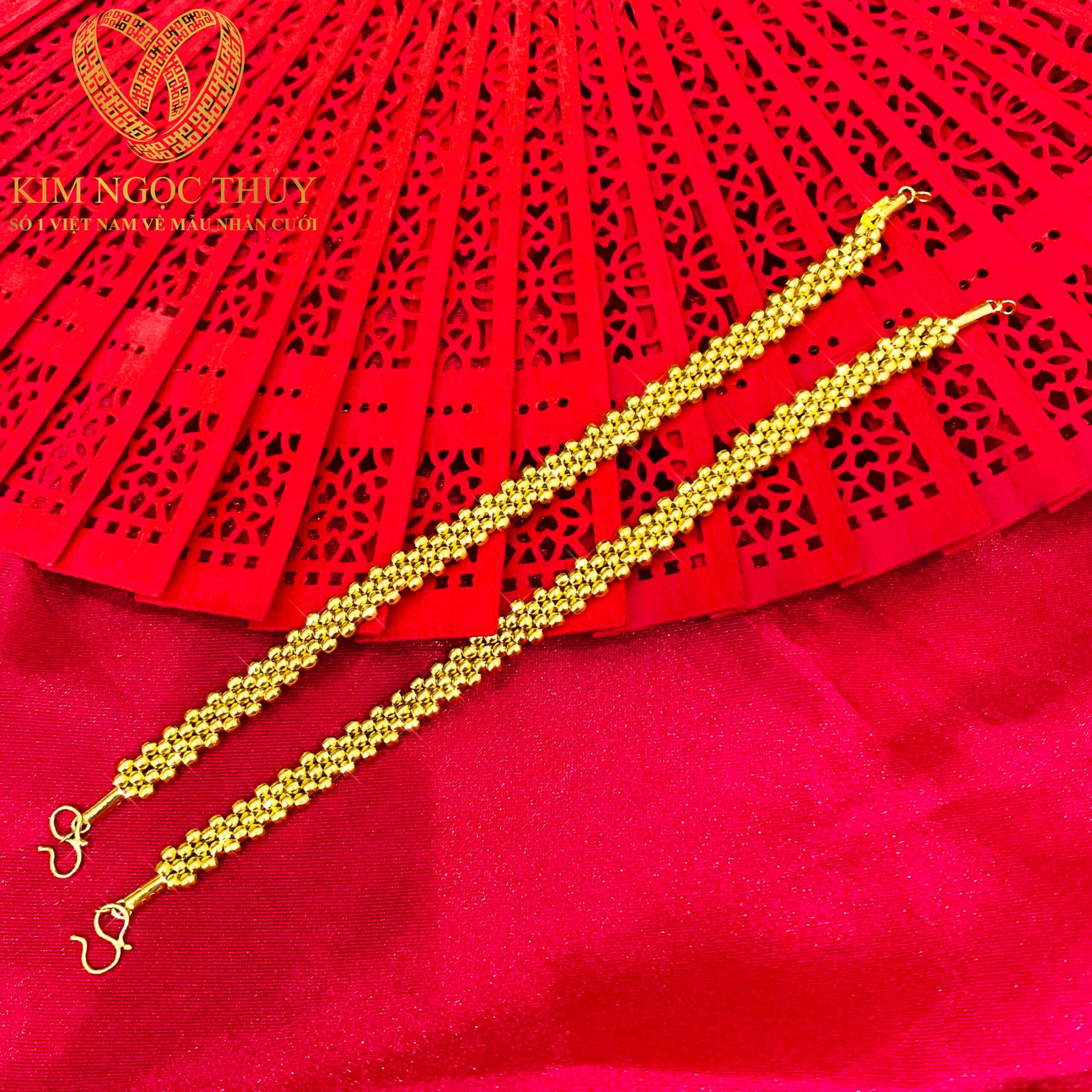 Vàng 585 14KBộ trang sức cưới được coi là sính lễ quan trọng trong ngày thành hôn, không chỉ tôn vinh vẻ đẹp của cô dâu mà đây còn là lời chúc phúc của cha mẹ gửi đến cặp uyên ương trong ngày trọng đại. Một bộ trang sức cưới cơ bản bao gồm nhẫn cưới, bông tai cưới, kiềng cưới, lắc tay và dây chuyển. Trang Sức Cưới do Kim Ngọc Thủy chế tác. Khách hàng có thể mua lẻ từng món và không nhất thiết phải mua theo bộ. Nhiều mẫu trang sức tinh tế và sắc sảo.