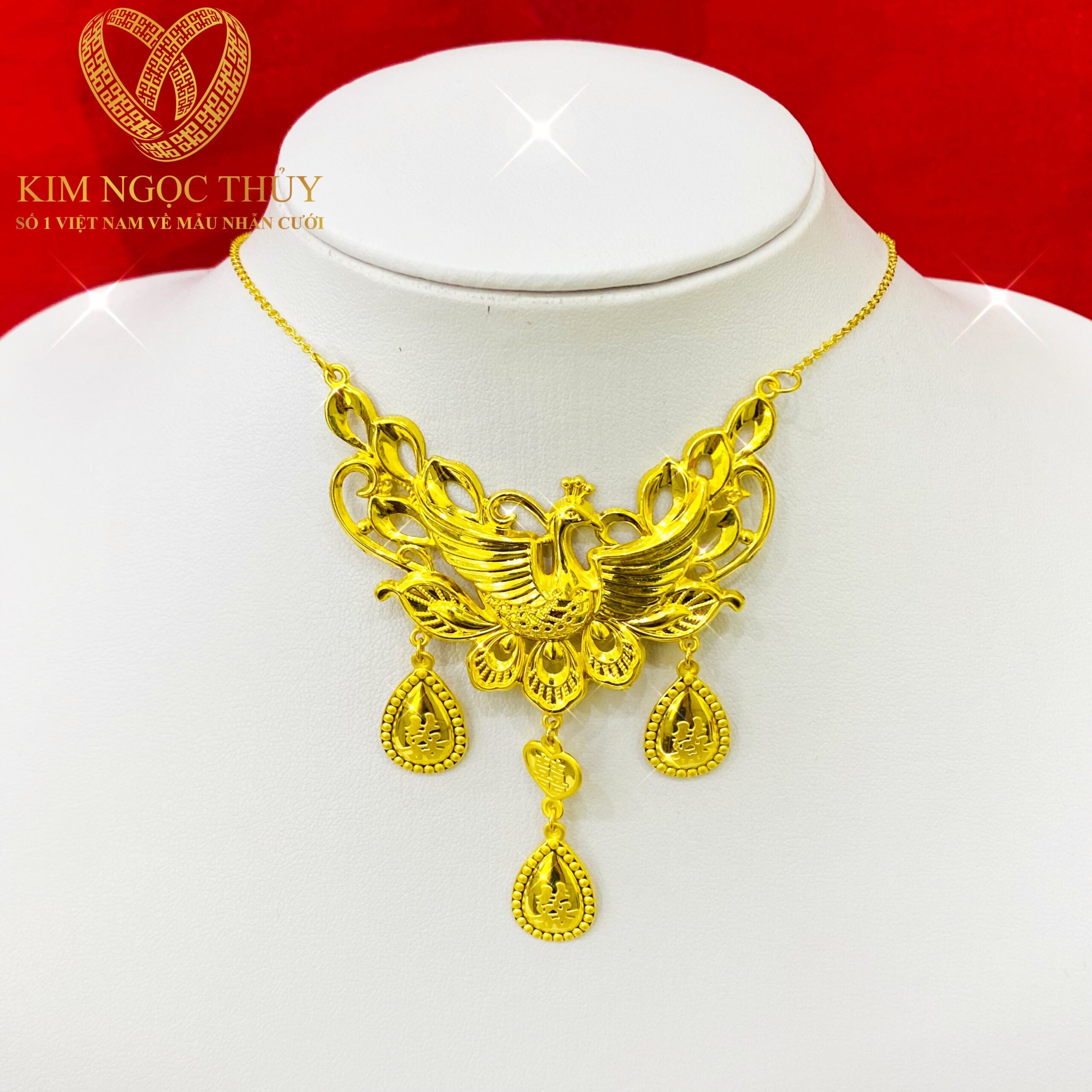 Bộ trang sức đeo trong ngày cưới là lựa chọn cá nhân của cô dâu, phản ánh cá tính và phong cách riêng. Từ những thiết kế cổ điển đến hiện đại, Kim Ngọc Thủy mang đến đa dạng lựa chọn phù hợp với mọi kiểu váy cưới và phong cách trang điểm.