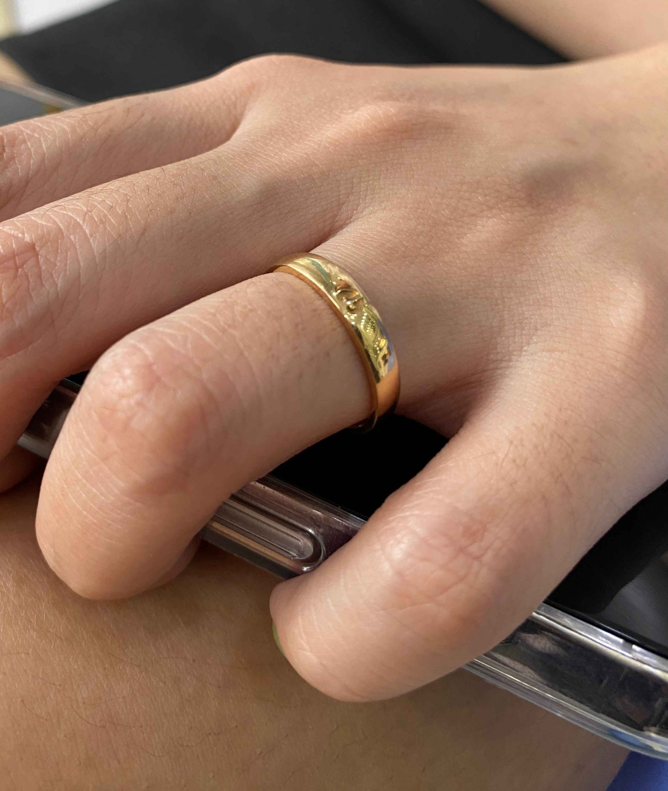 4. Nhẫn của bạn đủ khít để không bị rơi ra, và đủ rộng để trượt qua các khớp ngón tay. Vì vậy nếu bạn băn khoăn giữa 2 kích cơ thì bạn nên chọn 1 kích cỡ lớn hơn.