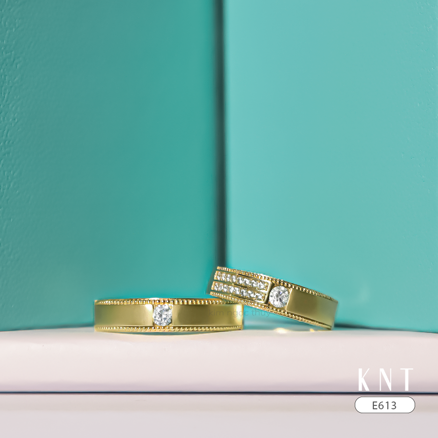Nhẫn Cưới E613 – Với Thiết Kế Mang Hơi Hướng Cổ Điển Được Chạy Bi Viền Phần Kiểu – Chiếc Nam Được Đính Một Viên Đá Chủ Làm Toát Lên Sự Mạnh Mẽ Của Phái Mạnh – Chiếc Nữ Đặc Biệt Hơn Khi Được Đính Thêm Trên Phần Kiểu Làm Sáng Tay Người Đeo