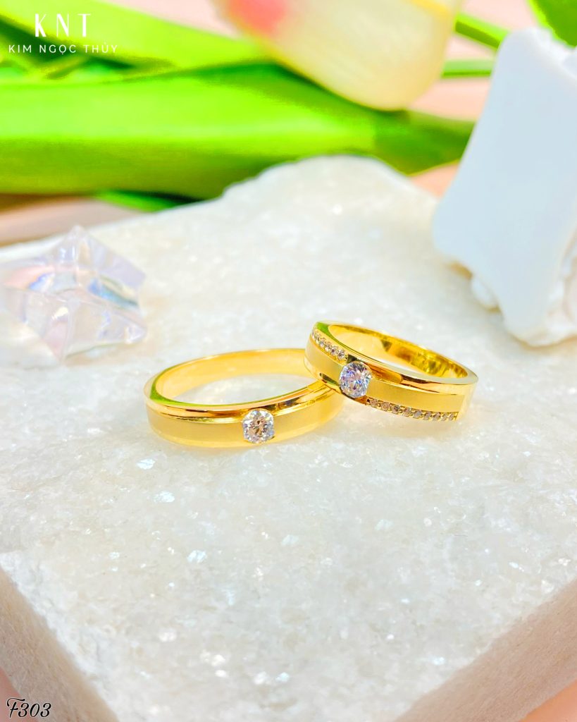 Nhẫn cưới F303 – Đôi nhẫn mang nét đẹp sang trọng quý phái – Thiết kế mang tính thẩm mỹ cao – Chắc chắn sẽ làm hài lòng các đôi uyên ương có gu thẩm mỹ tinh tế, thanh lịch.