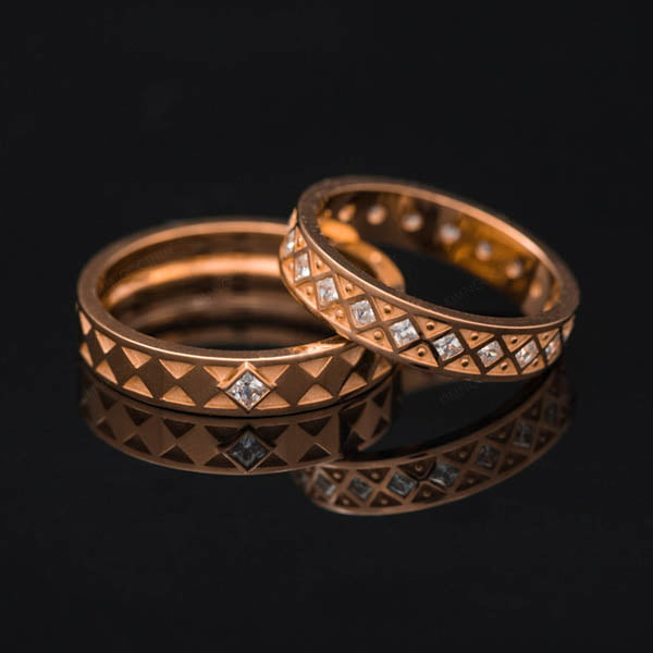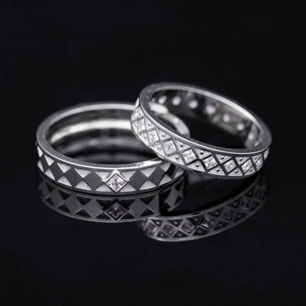 Mẫu nhẫn cưới J78 với thiết kế hình khối độc đáo, khỏe khoắn biểu tượng cho những “Tọa độ yêu” mà đôi uyên ương đã cùng nhau chinh phục.