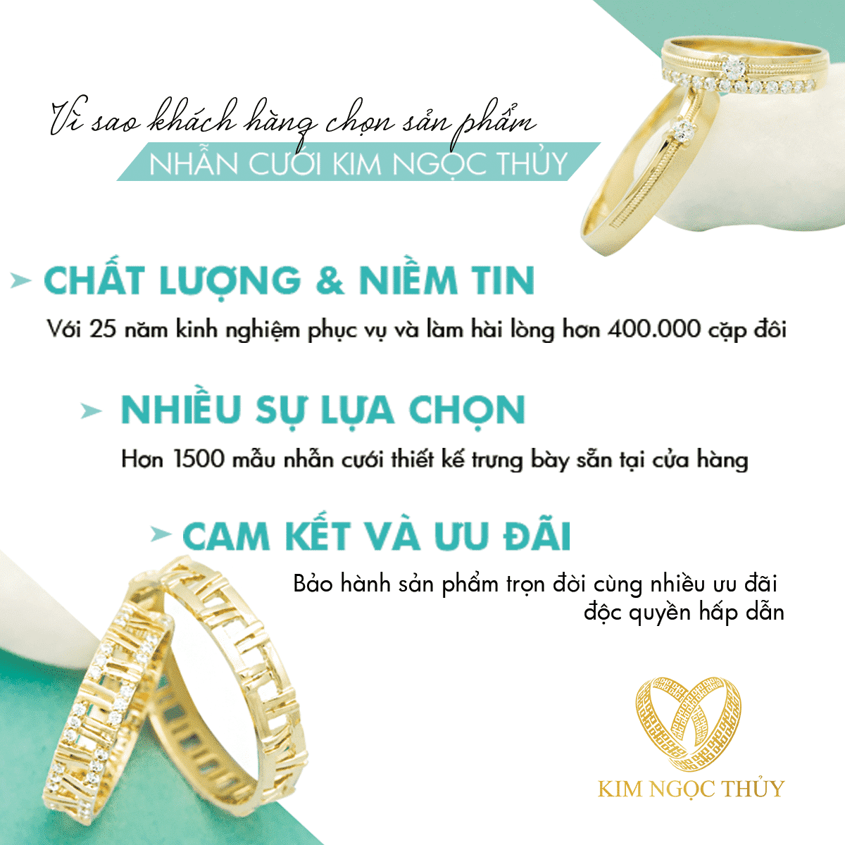 Kim Ngọc Thủy tự hào đem đến cho quý khách hơn 1500 mẫu Nhẫn Cưới thiết kế với giá tốt nhất do chính chúng tôi chế tác.